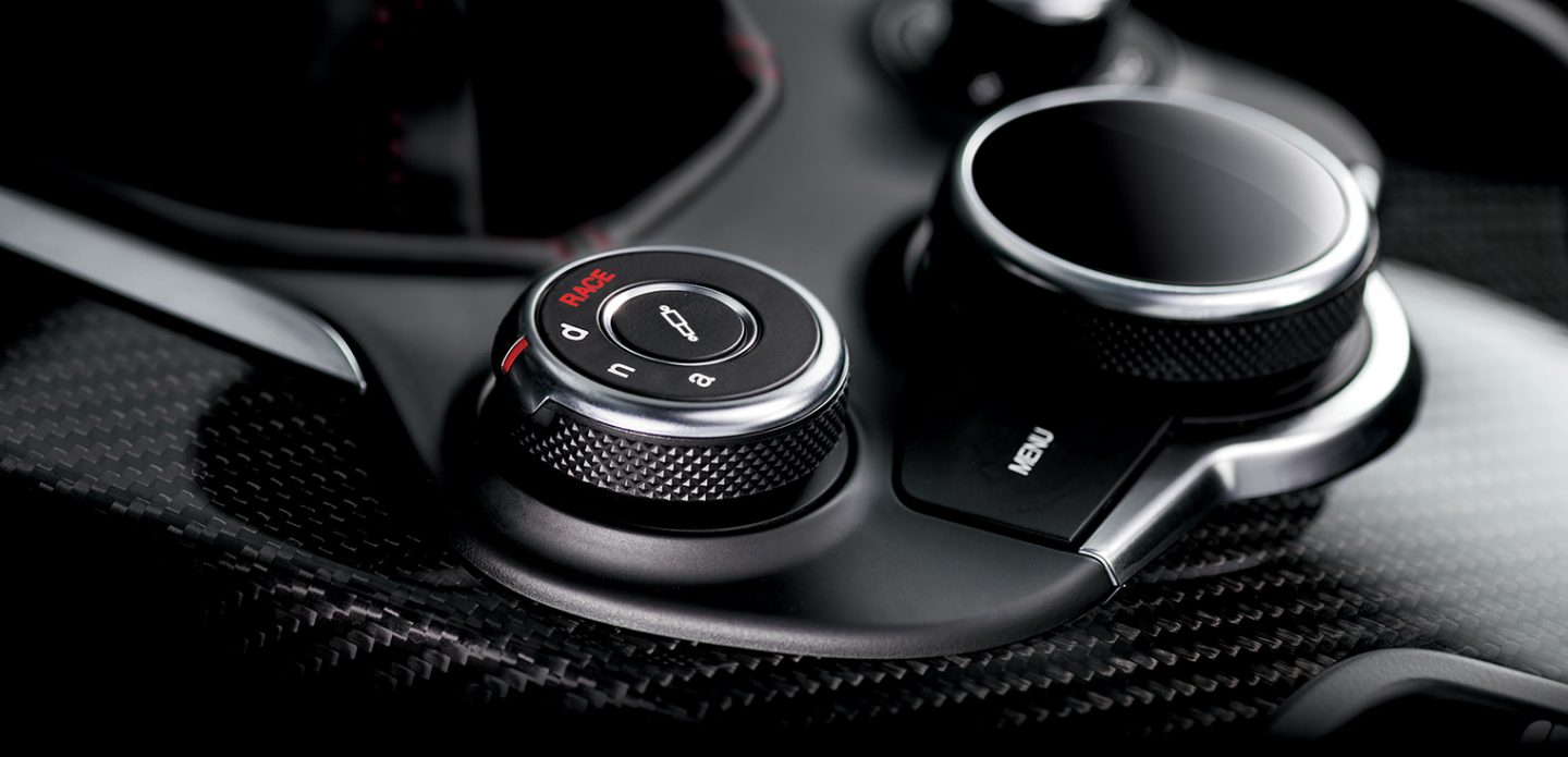 A exemplo do que já aconteceu com outros modelos recentes da Alfa, o Quadrifoglio vem equipado com o já famoso sistema DNA que, neste caso particular, estreia uma nova versão (Pro) que incorpora a apetecível função dedicada aos track days. Este sistema interage com o Chassis Domain Control. No total tem quatro modos de condução, comandados por um botão giratório (nas versões normais o modo de atuação é sob forma de pequena alavanca):