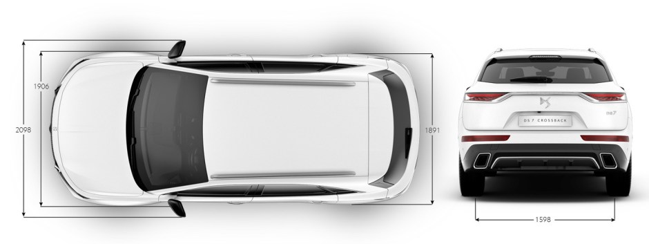 O DS 7 Crossback possui a maior capacidade de mala do seu segmento: 555 L (com bancos traseiros rebatidos a capacidade passa para 1750 L). Eis aqui o detalhe das dimensões do veículo (dimensões em mm e volume em L):