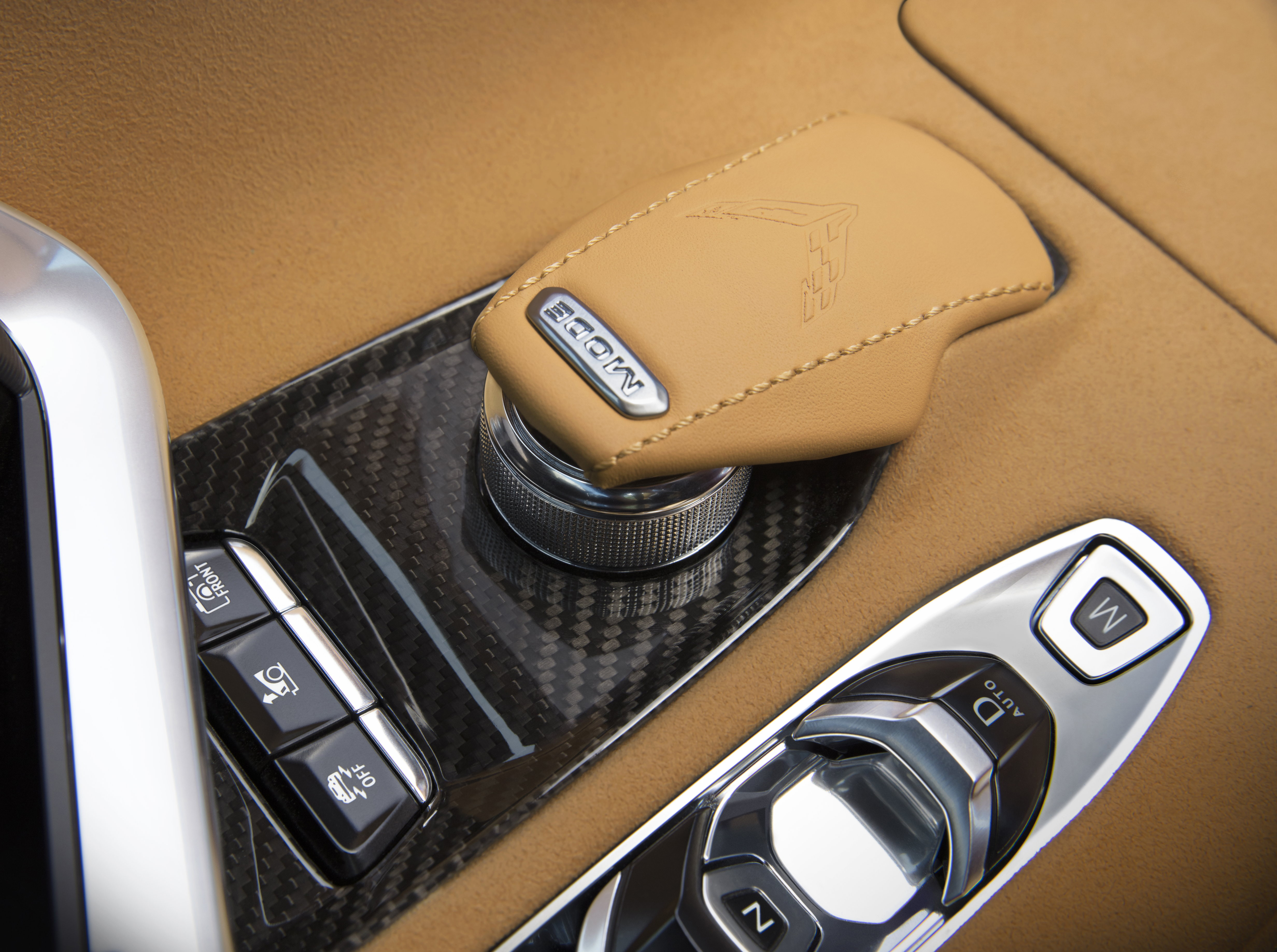 O novo Corvette vem equipado com os quatro modos de condução provenientes da anterior geração – Weather, Tour, Sport e Track – a que se juntam dois novos modos: o MyMode, que configura de modo mais personalizado os diferentes parâmetros comportamentais do carro, e o modo “Z”, cujo botão se encontra no volante e que eleva o modo MyMode a uma gama de opções mais agressivas. A fim de melhor controlar o elevado binário, o C8 vem equipado com um diferencial eletrónico de deslizamento limitado, integrado no sistema de transmissão, que alterna o binário entre as duas rodas traseiras para uma melhoria substancial da estabilidade do superdesportivo.