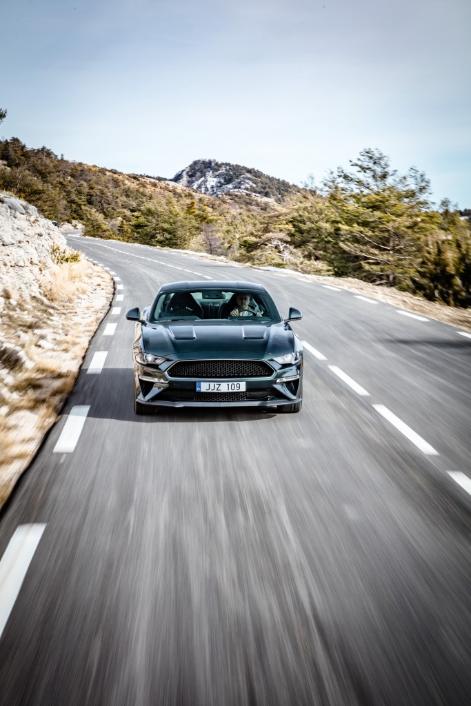 Em termos de performances e tecnologia, o carro é equipado com o motor 5.0 V8 atmosférico que é a mais recente evolução do mítico bloco Coyote. Se na versão normal GT a potência cifra-se nos 450 cv às 7000 rpm, na versão especial Bullitt vendida na Europa esse valor eleva-se para os 460 cv na mesma faixa de rotações e com o mesmo torque que é de 529 Nm às 4600 rpm (no mercado americano a potência aumenta para cerca de 480 cv). A grande vantagem face a um GT normal é que a transmissão manual de seis velocidades possui uma tecnologia de sincronização de rotações – o já citado Rev Matching – que recorre à gestão eletrónica do motor para provocar uma “aceleração dupla” que dá o mesmo efeito do tradicional “ponta-tacão” aquando das reduções de caixa, ao mesmo tempo que promove passagens suaves e instantâneas de caixa. Por outro lado, o aumento de potência é provocado por soluções herdadas da versão de performance Shelby Mustang GT350, tais como o Sistema de Indução Open Air, as condutas de admissão e módulo de controlo do motor e o acelerador de 87 mm. O característico “gorgolejar” do motor V8 é reforçado pelo sistema de escape de alto rendimento, com quatro ponteiras e respetivas válvulas de escape ativas. O comportamento em estrada é dinamizado ainda pela suspensão ajustável MagneRide da Ford, de geometria independente nos dois eixos, que utiliza um fluido cuja função é influenciada por estímulos eletrónicos, em tempo real e e até cerca de 1000 vezes por segundo, face às frequentes alterações das condições de estrada, o que, conjugado com o modo de condução ativado no momento, adequa o comportamento do carro sem penalizar o conforto dos ocupantes, o que favorece o uso do carro no dia a dia. Os quatro modos de condução disponíveis – “Normal”, “Desportivo”, “Pista” e “Neve/Chuva” – determinam a resposta do acelerador, os pontos de engate de mudanças (caso se opte pela transmissão automática de 10 velocidades), a dureza de viragem do volante e a calibração do controlo de estabilidade. Claro está que o modo “Pista” é o modo mais duro e o que permite ao Mustang Bullitt extrair o máximo das suas capacidades, assegurando contudo que o condutor se sinta seguro, muito mais seguro do que Steve McQueen se sentiu no Mustang GT Fastback original. Mas, na década de 1960 os tempos e os costumes eram outros…