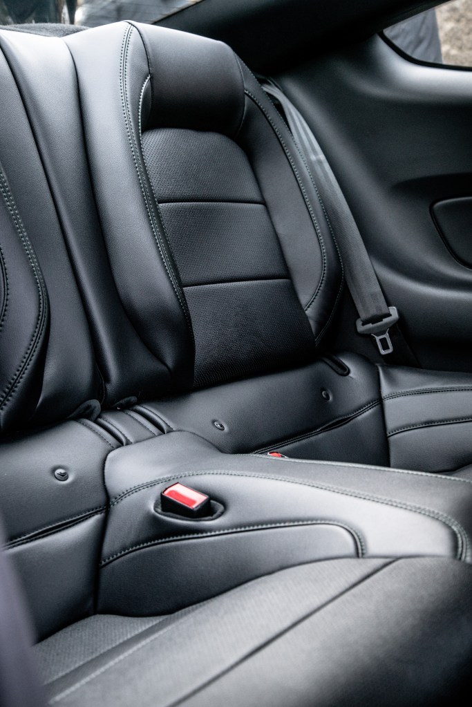 No interior, o design de base é igual ao de qualquer Mustang, com quatro lugares sentados (2+2). Para além das inscrições “BULLITT” já referidas, destaca-se também o punho da caixa manual de seis velocidades (equipada com tecnologia de Rev Matching), de forma esférica e cor branca (do tipo “bola de bilhar”) que contrasta com o negro do esquema de velocidades, que representa uma herança do Mustang “Bullitt” original. O painel de instrumentos, que mantém o esquema de base 100% digital e moldável de acordo com os diferentes modos de condução, tem um padrão de cores exclusivo e distinto das versões normais. Exclusivo é também o sistema de som de alta fidelidade B&O – comandado pelo sistema de infoentretenimento que apresenta um ecrã LCD de 12 polegadas – capaz de debitar 1000 watts de potência distribuídos por 12 colunas espalhadas estrategicamente pelo habitáculo. É predominante o revestimento em couro preto no interior (inclusive em toda a extensão do travão de mão), com aquela placa metálica galvanizada a atravessar o tablier de uma ponta à outra e outros apontamentos de metal nas portas e na consola central. Ao invés dos bancos normais dianteiros em couro, o Bullitt pode vir equipado com bancos desportivos da Recaro, também eles forrados em couro preto. Todos os bancos são costurados com linhas da cor da carroçaria. Não há dúvidas de que o interior faz qualquer condutor sentir-se como um “Steve McQueen”…