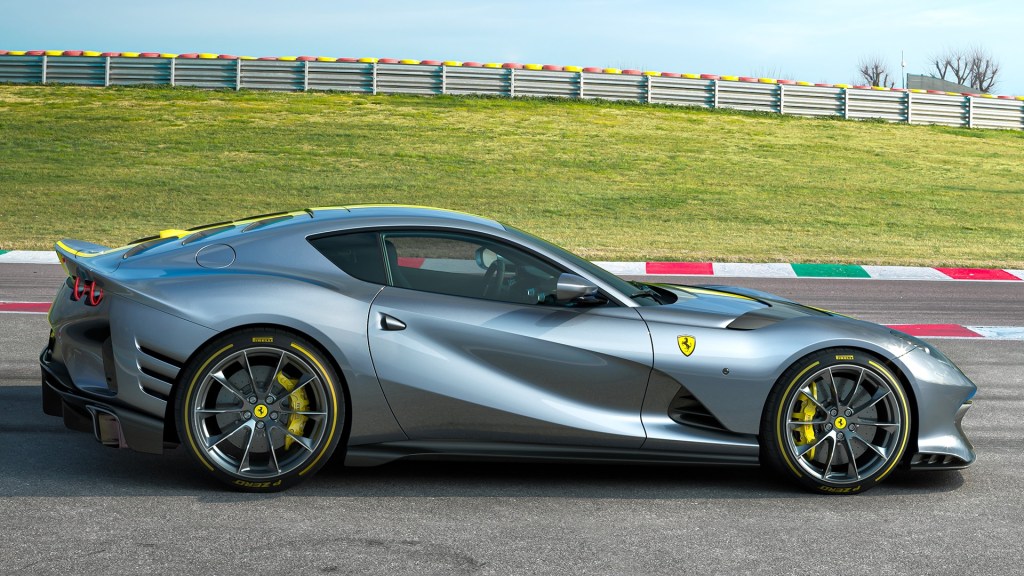 Foi também colocado um especial foco na redução do peso do carro de modo a que este se tornasse mais leve, o que resultou na redução de 38 kg do seu peso total em comparação com o 812 Superfast. As principais áreas de intervenção foram: o conjunto motor-transmissão, os acessórios de corrida e a carroçaria. A fibra de carbono foi amplamente utilizada no exterior, especialmente nos para-choques dianteiros e traseiros, no spoiler traseiro e nas entradas de ar.