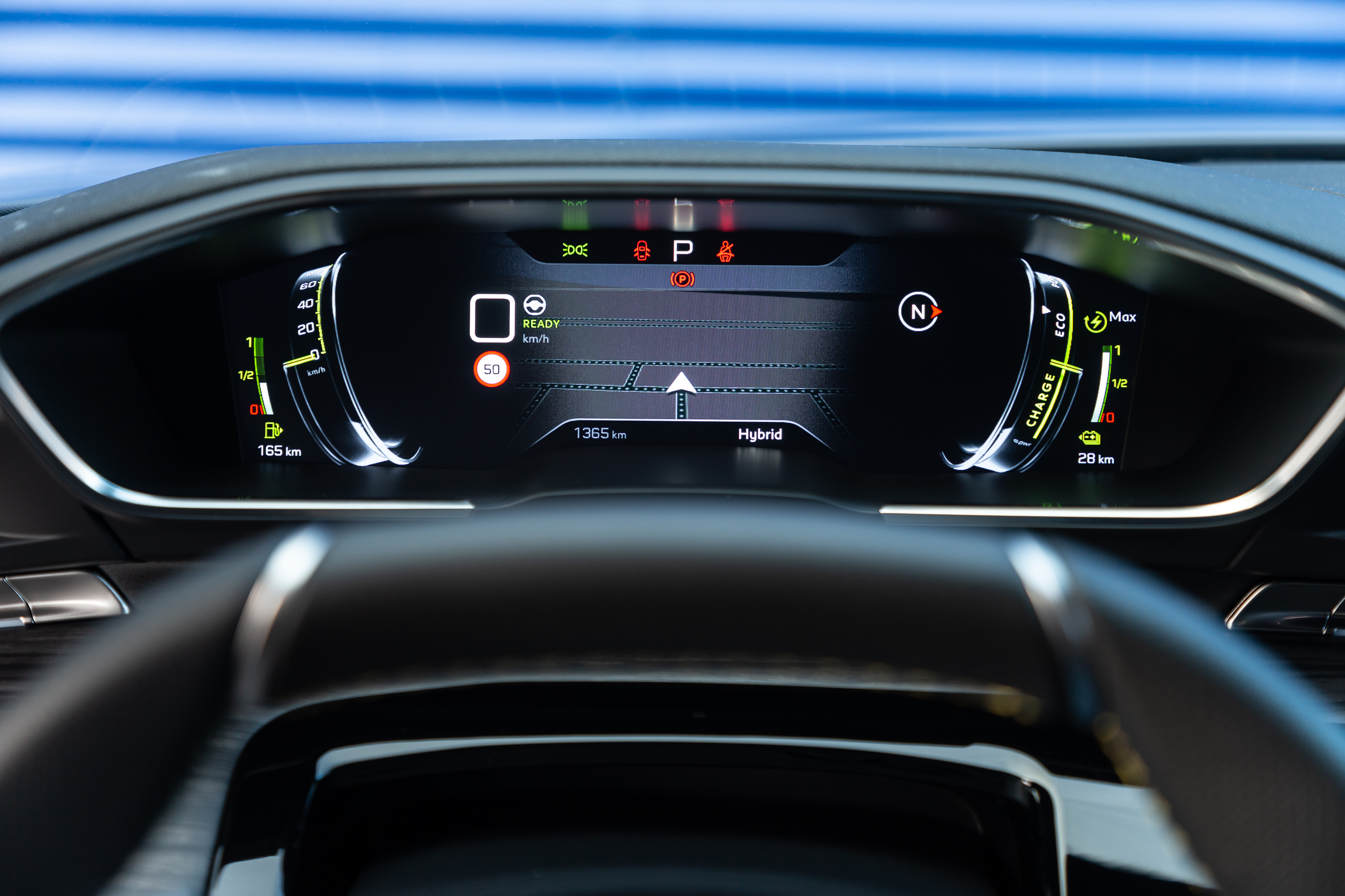 Tal como no 508 HYbrid (cuja bateria é carregada em modo Plug In), o 508 PSE tem a capacidade de rolar (ou “bolinar”) em modo 100% elétrico (Electric), que é sempre o modo de arranque de qualquer modelo híbrido. Neste caso específico, atua apenas o motor traseiro de 113 cv que confere ao carro um carácter de “puro tração traseira” e permite que o carro circule silenciosamente até à velocidade de 140 km/h; ultrapassando esta fasquia, é ativado de imediato o modo “Hybrid”, sendo que nessa altura é despertado o motor de combustão. O sistema elétrico é alimentado por uma bateria de iões de lítio com 11,2 kWh de capacidade que produz uma potência máxima de 117 kW que, pese embora a sua boa capacidade regenerativa (que produz um carregamento interno de potência standard de 3,7 kW, ou de 7,4 kW com a opção alternativa), apenas tem um alcance de 42 km em ciclo WLTP; sendo o 508 PSE um plug in, pode ser carregado de três maneiras: numa ficha normal de parede de 10 A (em 7 horas), numa tomada de 16 A (em quatro horas) ou numa wall box de 32 A em apenas 1 hora e 45 minutos. Quanto ao consumo combinado de combustível (ciclo WLTP) e emissões de CO2, a marca anuncia 2,03 l/100 km e apenas 46 g/km de emissões. Tendo em conta que o depósito do 508 PSE é de 43 litros, numa condução descontraída em autoestrada em modo Confort, o bólide é perfeitamente capaz de fazer uma viagem entre Porto e Faro com o depósito cheio e sem necessidade de reabastecimento pelo meio. Hei de fazer a experiência no futuro. Até porque concorri ao passatempo promovido pela Peugeot Portugal…