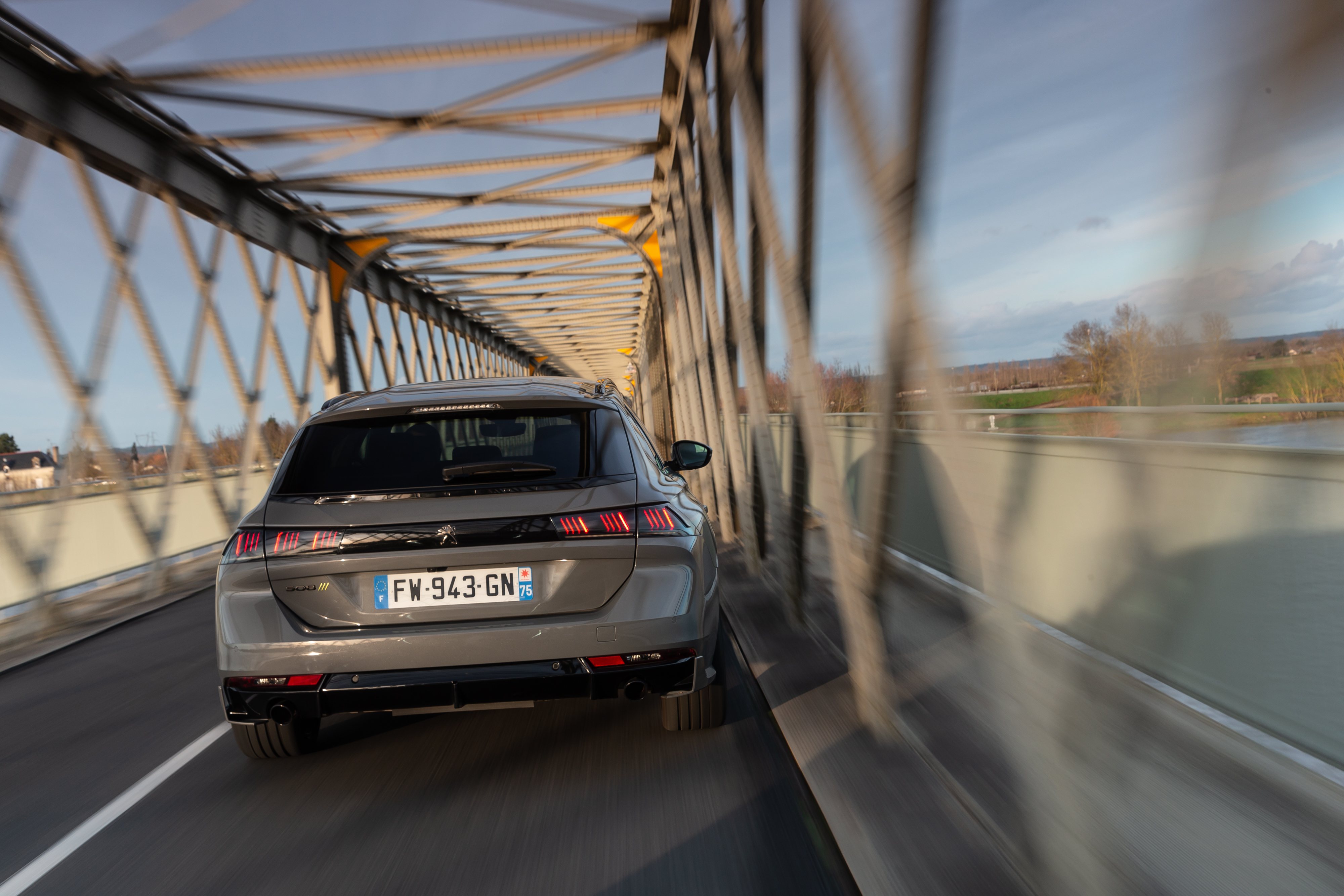 A essência de design do modelo 508 em si já é a de um sedan/SW desportivo de baixo perfil – onde os “dentes de sabre” são o indispensável “apêndice dentário” do “leão francês” -, facto que apenas trouxe a desvantagem de sacrificar ligeiramente a capacidade da bagageira face à geração anterior. Exteriormente, talvez até mais que interiormente, o 508 PSE teve o condão de otimizar esta característica para níveis de engalanamento do coração do futuro proprietário, graças à genialidade criativa da Peugeot Sport.