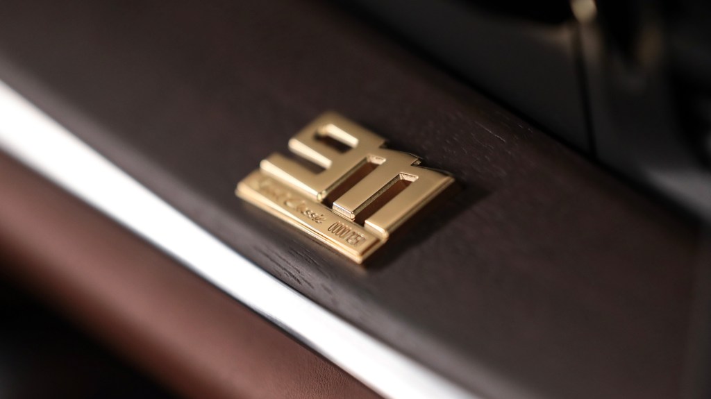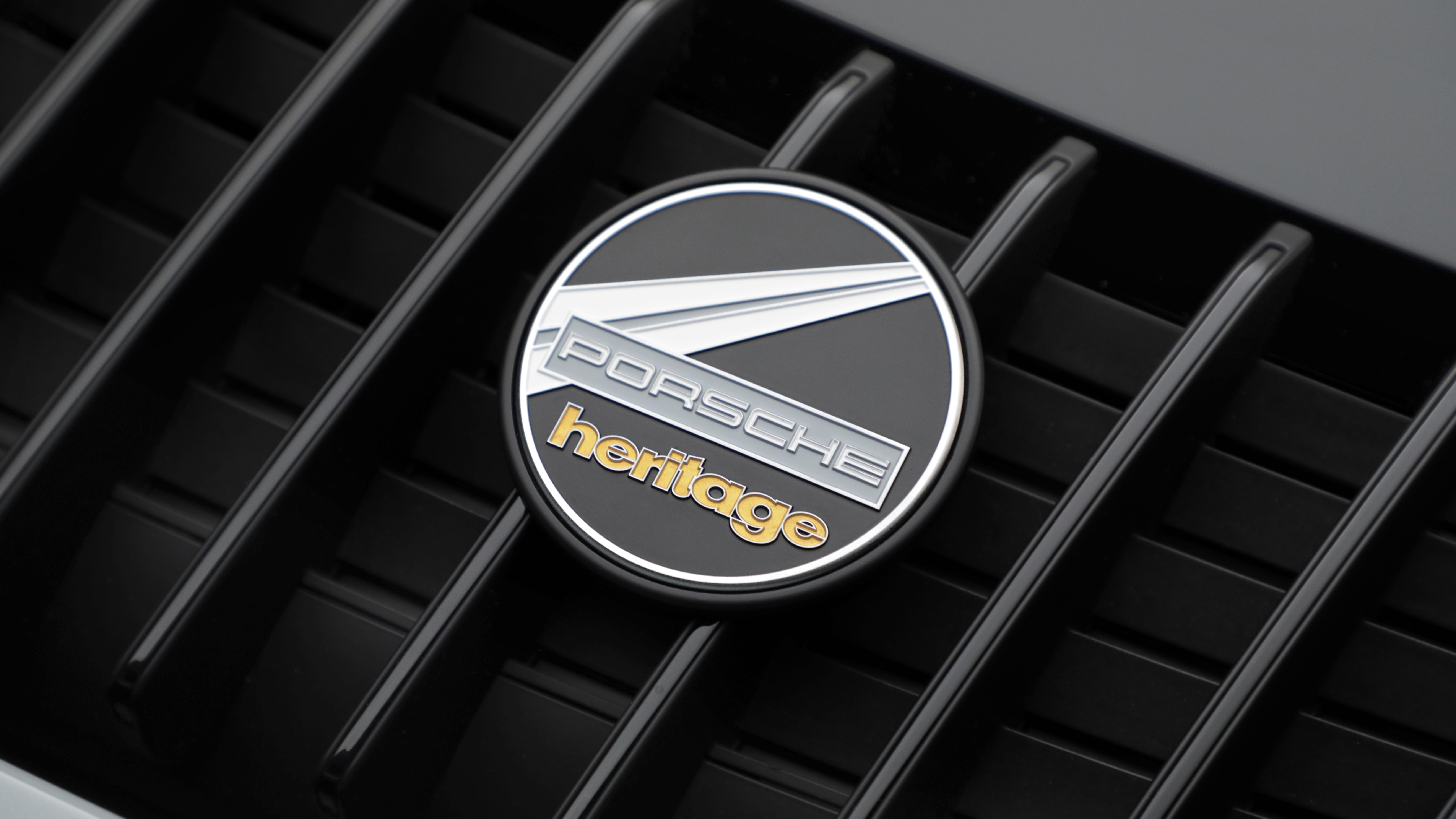 Existem ainda outros detalhes deliciosos no exterior. De facto, a carroçaria é a mesma de um 911 Turbo, mas com diferenças e acrescentos exclusivos. A começar pelas duas entradas de ar laterais, que são inexistentes. O capô, o tejadilho de dupla bolha e ainda o spoiler em forma de “cauda de pato” foram fabricados em plástico reforçado com fibra de carbono (CFRP). O lábio do spoiler dianteiro apresenta um desenho exclusivo e foi pintado na mesma cor da carroçaria, assim como as saias laterais SportDesign. A moldura da parte inferior dos espelhos retrovisores (incluindo a base do espelho) foi pintada em Preto Brilhante. Também pintados em Preto Brilhante estão as lamelas das entradas de ar traseiras, as lamelas de entrada de ar dianteiras e o para-choques traseiro SportDesign. As molduras das janelas são em preto. As placas com logótipo “PORSCHE” e a designação “911 Sport Classic” foram maquiados num brilhante e consistente dourado (não se pode afirmar que as placas sejam de facto em ouro, mas…). Nas laterais do carro estão estampados detalhes evocativos da competição automóvel – o lollipop com o número de partida e a inscrição “PORSCHE” – na cor Cinzento Sport Claro, a mesma cor que é utilizada nas two stripes do centro da carroçaria que se estendem da extremidade do capô dianteiro até à extremidade da “cauda de pato”. Na grelha da entrada de ar traseira, do lado direito está fixada uma placa circular com a menção “Porsche Heritage”. A fim de glorificar os “velhos tempos”, o capô do Sport Classic não ficou estampado com a atual versão do escudo da Porsche, mas sim com uma variante mais dourada do histórico escudo de 1963. O mesmo escudo aparece no centro das porcas centrais das belíssimas jantes de cinco raios exclusivas Sport Classic. Nos guarda-lamas dianteiros foi colocada uma placa com o símbolo da Porsche Exclusive Manufaktur, atestando a extremo profissionalismo com que os mestres artesãos fizeram os retoques finais.