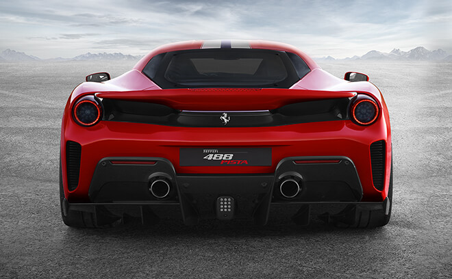 Já na traseira do carro, existe um furo na frente da entrada para a zona de admissão do intercooler que limpa e retarda a expansão do fluxo que chega aos radiadores. Em movimento, o ar frio é aspirado para o compartimento do motor através de três aberturas: a primeira localizada acima da entrada do intercooler na lateral e a segunda transversalmente na tampa do motor, ao passo que a terceira consiste num par de dutos localizados nas laterais dos suportes do spoiler fixo.