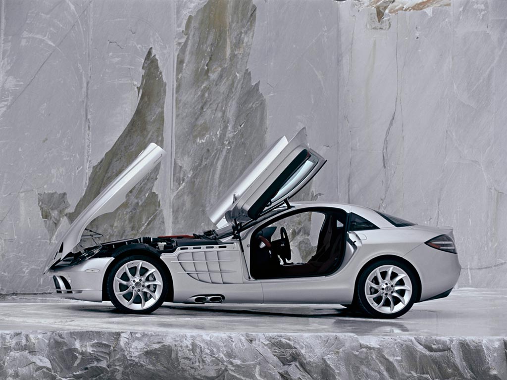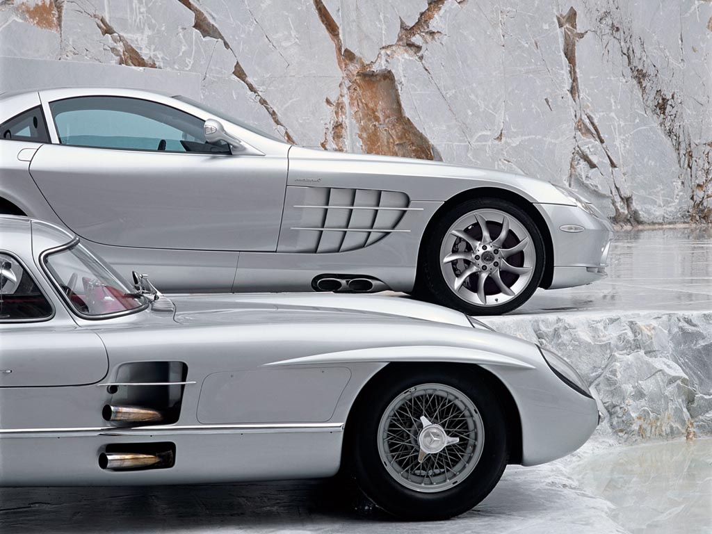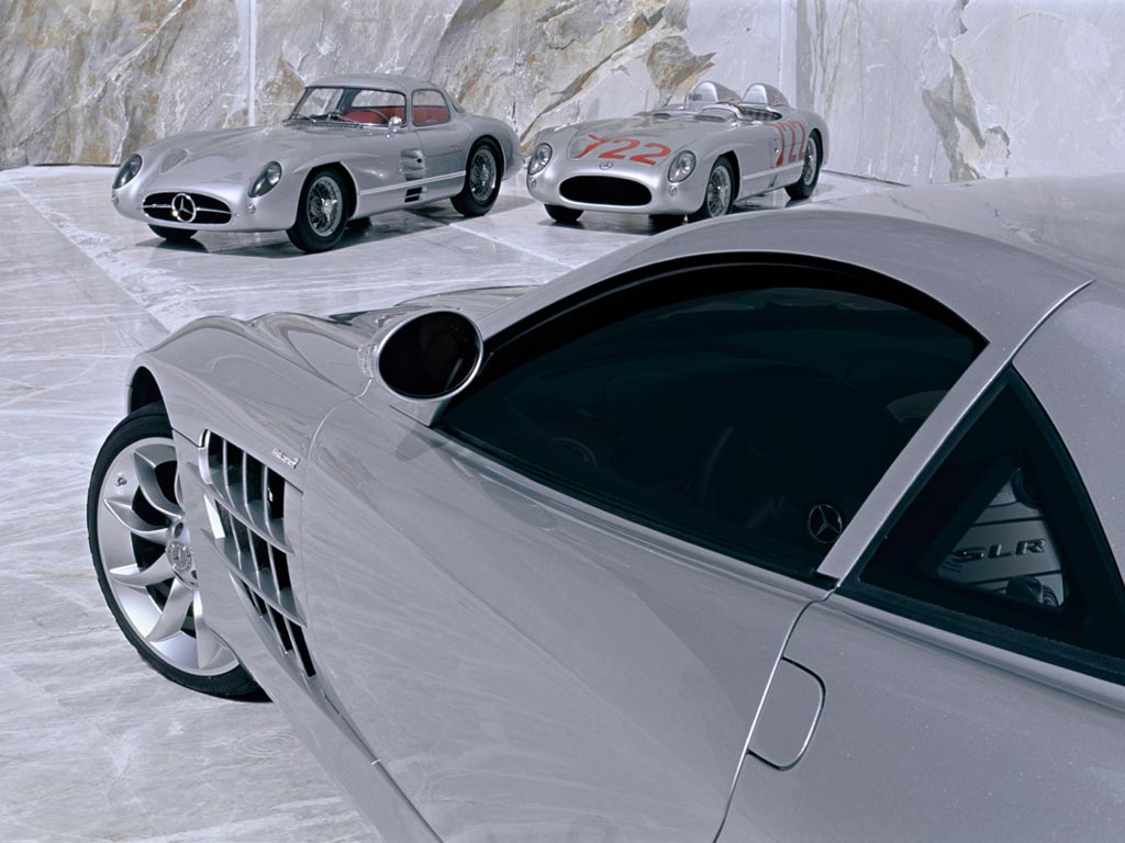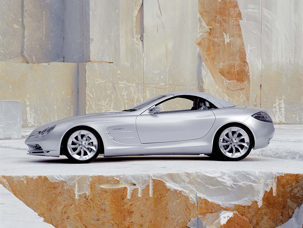 Na edição de 1999 do North American International Auto Show, a Mercedes-Benz apresentou um concept de um superdesportivo que recebeu a designação de Vision SLR – SLR é a abreviação de “Sport Leicht Rennsport” (Sport Light Racing) -, sob o slogan “Tomorrow Silver Arrow” (A Flecha de Prata do Amanhã), o qual buscou a inspiração tanto no Mercedes-Benz 300 SLR Uhlenhaut Coupé de 1955 – uma versão de corrida modificada do modelo W196S – como no design dos exemplares de F1 de rodas cobertas que a Mercedes-Benz utilizou em alguns circuitos aquando da conquista dos campeonatos de pilotos de 1954 e 1955 através do experiente piloto argentino Juan Manuel Fangio e, não menos importante, dos vice-campeonatos do multifacetado piloto inglês Stirling Moss (mais tarde Sir Stirling Moss), em plena era dourada na qual tais carros ficaram conhecidos como Flechas de Prata (Silver Arrows). Mais tarde, em 2003, aquando do desenvolvimento do projeto derivado do concept car, a Mercedes-Benz adquire 40% de participação no Grupo McLaren, num contexto de plena parceria de fábrica entre ambas as partes na F1 que incluia o desenvolvimento de motores e da eletrónica para os bólides de F1 da McLaren. Mais tarde, nesse mesmo ano, durante o Salão Automóvel de Frankfurt, foi revelada a versão roadster do SLR. O protótipo foi equipado com um motor preparado pela AMG V8 sobrealimentado de 5.0 litros, acoplado a uma caixa automática de cinco velocidades com um especial comando Touchshift, capaz de gerar uma potência de 565 cv e um binário de 720 Nm às 4000 rpm.