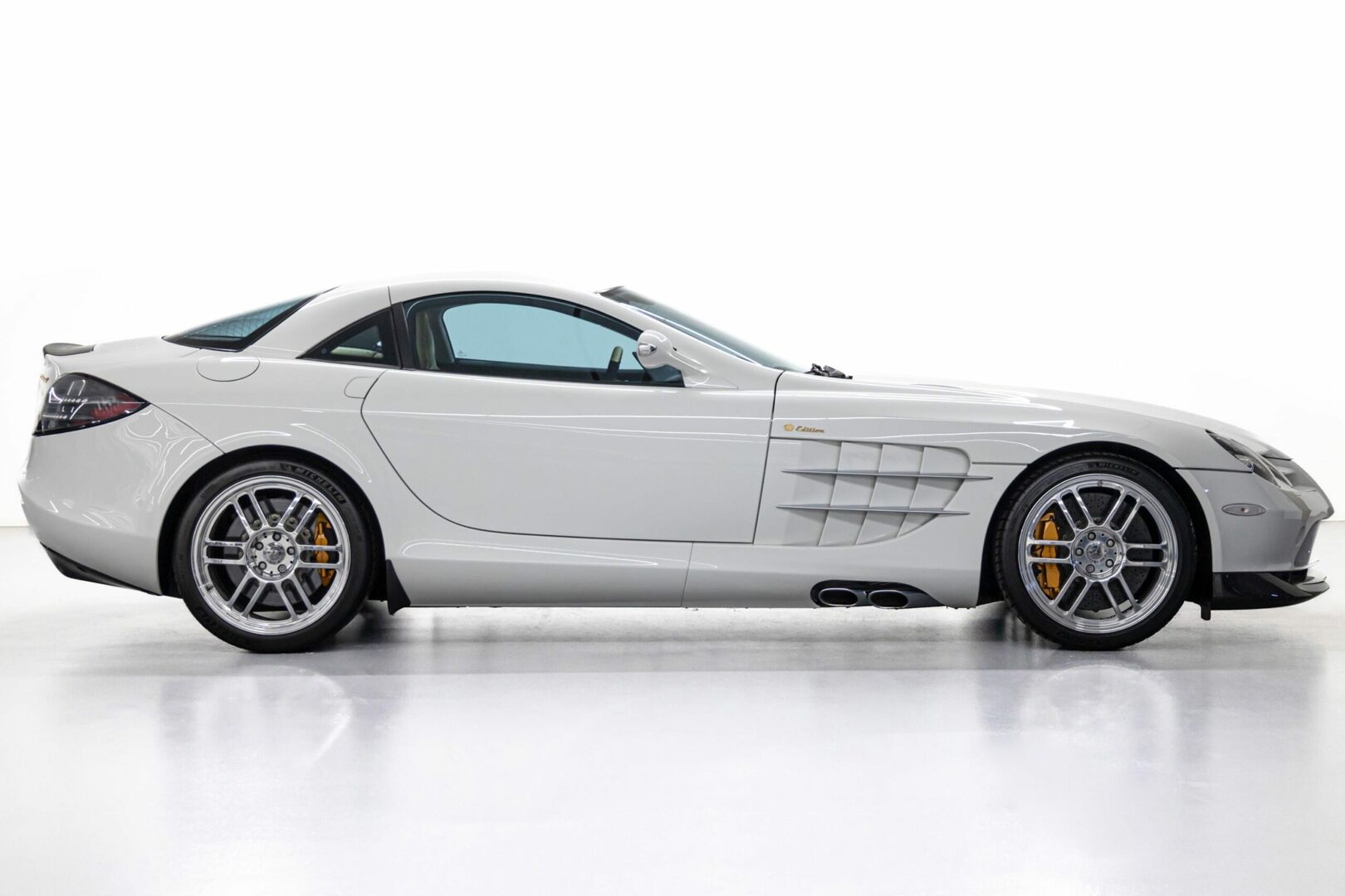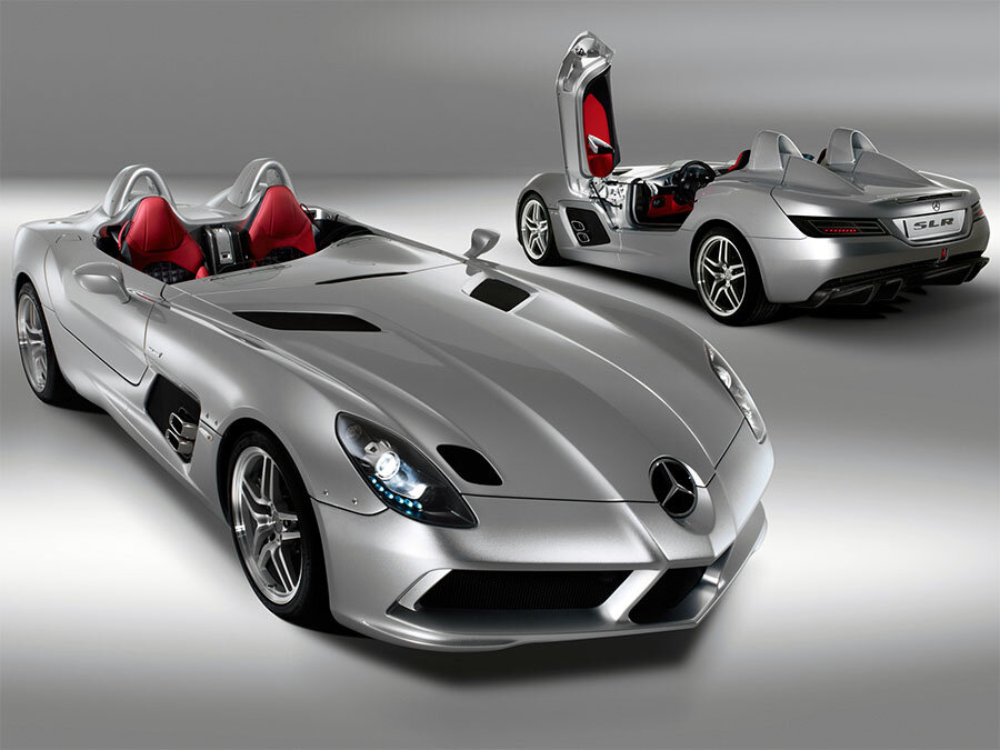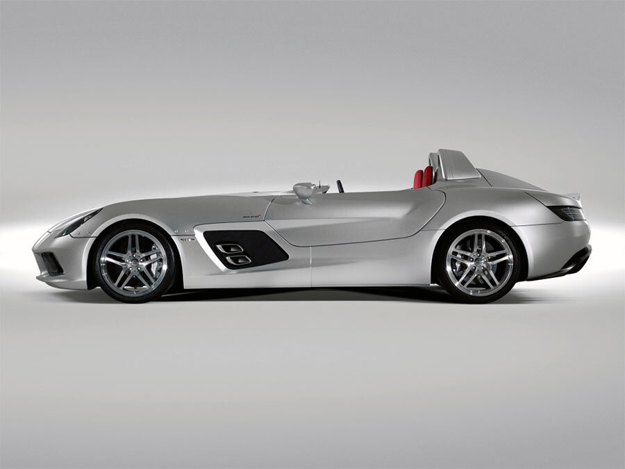 O ano de 2009 foi brindado com uma versão muito especial – em pleno Salão Internacional do Automóvel da América do Norte -, num atraente formato speedster que não inclui tejadilho nem para-brisas, em homenagem ao histórico piloto britânico da Mercedes-Benz, Sir Stirling Moss: o SLR Stirling Moss. Entretanto, a versão roadster do SLR fora descontinuada em maio desse ano. O desenho da carroçaria esteve a cargo do designer coreano Yoon Il-hun e é claramente inspirado na versão clássica de corrida do SLR, enquanto que o desenho do interior foi executado pelo designer neerlandês Sarkis Benliyan. O motor mantem as mesmas especificações técnicas da versão “722 Edition”, mas o peso é significativamente mais baixo do que a versão standard graças à sua construção em fibra de carbono e ao estilo speedster, com duas “bossas” protetoras, beneficiando notoriamente as performances: aceleração de 0 a 100 km/h em apenas 3.0 s e uma assombrosa velocidade máxima de 350 km/h. As 75 unidades produzidas até entre julho e dezembro de 2009 – cada uma com um preço superior a 1 milhão de dólares! – foram destinadas apenas para os proprietários de outras versões SLR McLaren existentes.