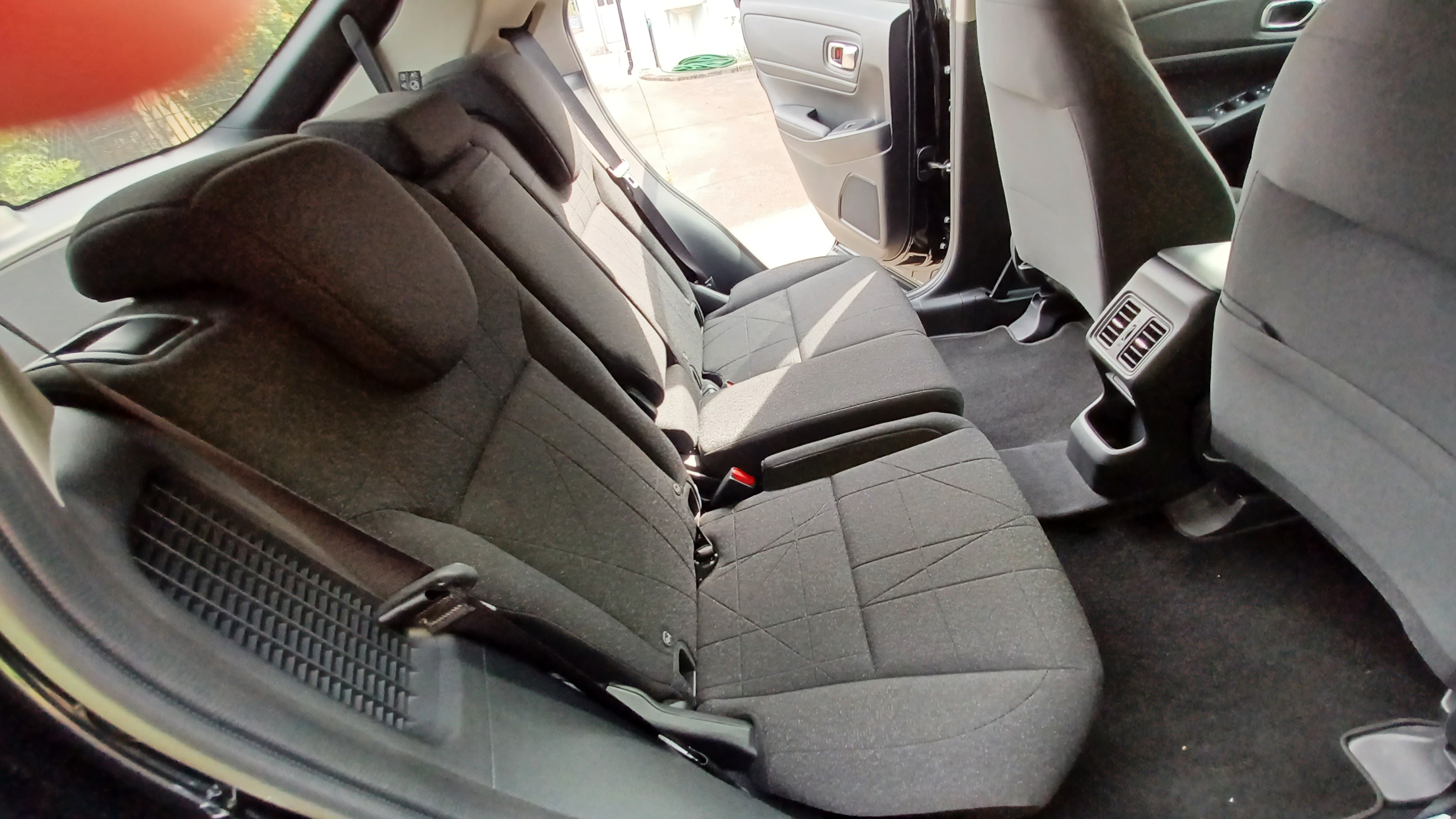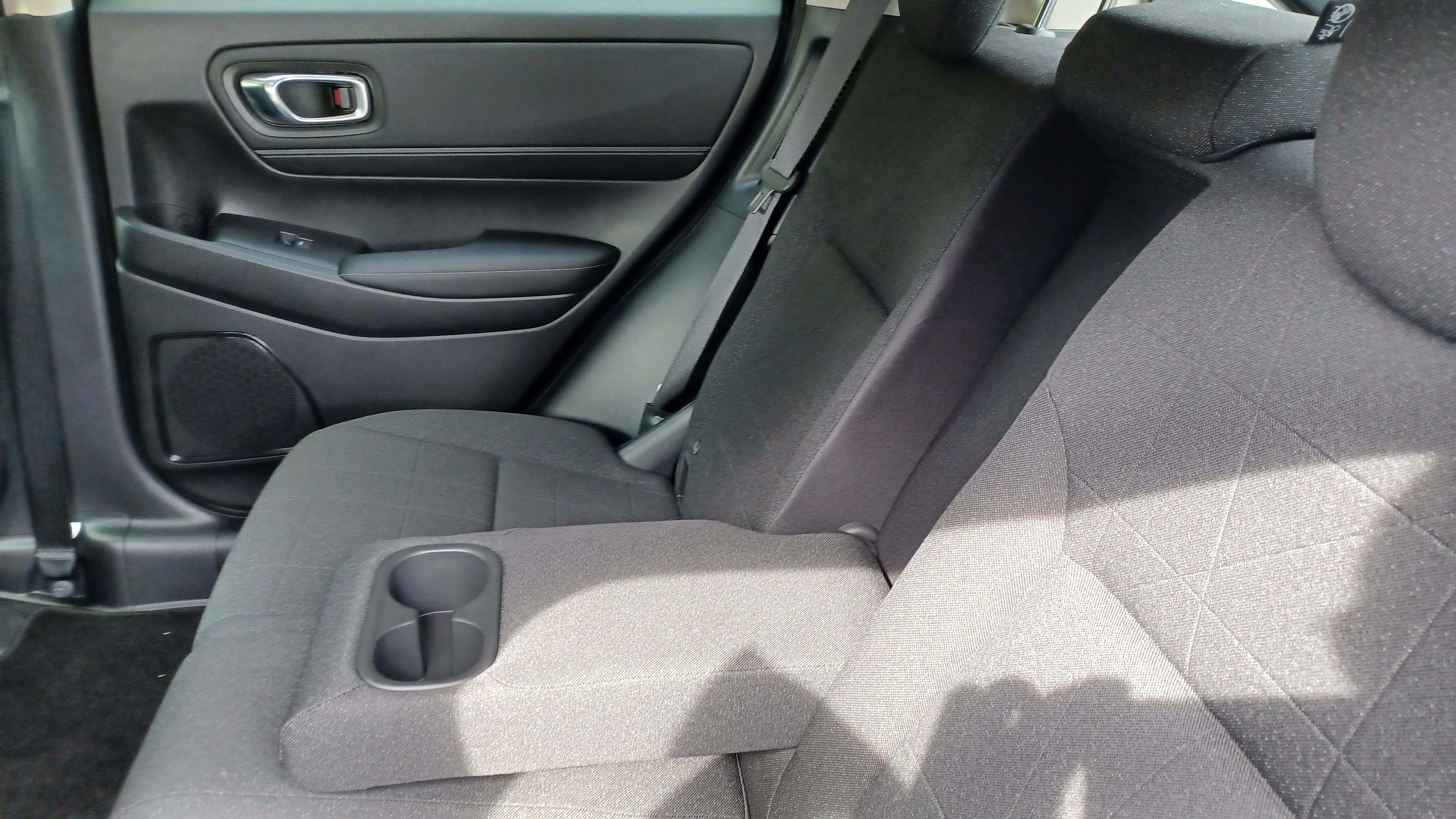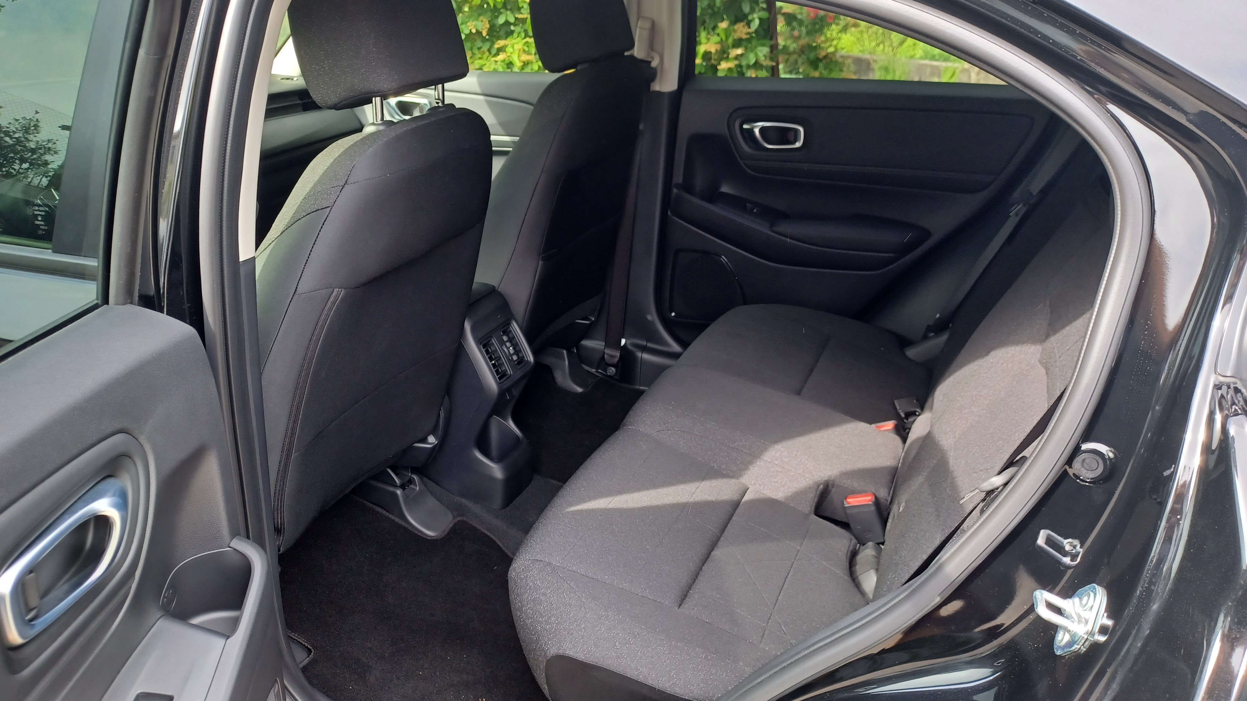 O design do interior é praticamente igual à versão lançada em 2021, exceto em pequenos detalhes: a parte inferior da consola sofreu alterações de modo a poder albergar uma desk de carregamento para smartphone via wireless, melhorando também a ergonomia nesta secção; embora não se note à primeira vista, o interior foi reforçado com mais materiais de insonorização; agora de série, e para maior comodidade e privacidade, os vidros das portas de trás são escurecidos. De série, mas apenas na linha de equipamento mais robusta, Lifestyle Plus, o tejadilho é composto por um teto panorâmico; é sempre bom, mas não é algo de que, sinceramente, tivesse sentido falta durante o ensaio, até porque a versão de equipamento de base, Elegance, já de si é extremante equipada, oferece um teto completamente coberto num tecido sólido e muito consistente, onde estão embutidas as luzes que sinalizam a abertura das portas para os bancos traseiros e que servem para manter-se ligadas em caso de necessidade e até para uma ótima visibilidade para leitura em total comodidade que os largos bancos traseiros conferem. Bancos traseiros esses que, tal como em todos os restantes modelos da gama (com exceção do 100% elétrico e:Ny1) possuem a modularidade Magic Seats – estreada no primeiro Honda Jazz – que confere uma enormíssima vantagem no aproveitamento e no acesso ao espaço para colocar objetos devidamente acomodados de acordo com o volume de carga, seja por cima das traseiras dos encostos de costas deitados, seja no espaço reservado aos pés e aos assentos que se levantam e se fixam junto dos encostos de costas quando estes se mantêm na mesma posição vertical.