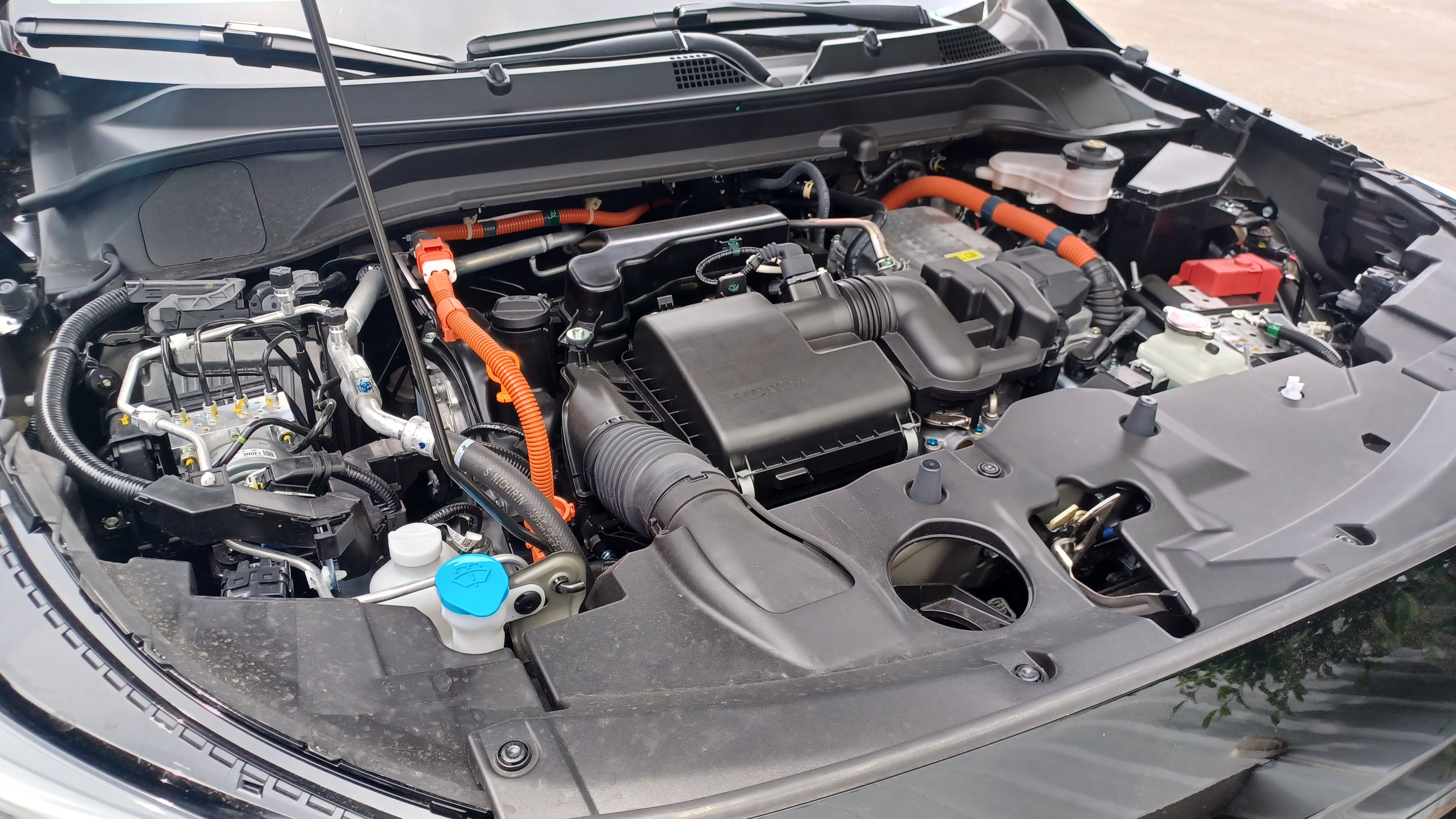 Em termos gerais, enaltece-se sem qualquer exagero: a qualidade de construção e dos materiais do interior, de inspiração japonesa, que, de base, conjuga uma boa dose de pele de qualidade premium com plásticos de acabamento reforçado e ainda o tecido de alta consistência e excelente respirabilidade; o design altamente convidativo e aconchegante, logo na versão mais básica que testámos (Elegance); o excelente sistema de som de base, o enorme espaço para as pernas – e também para os arrumos – tendo em conta que se trata do interior de um B-SUV; as saídas de ventilação estrategicamente posicionadas para os bancos da frente e para os bancos de trás, dinamizadas pelo Sistema de Difusão de Ar que é exclusivo do HR-V; a habitabilidade em todos os assentos (mesmo no assento central traseiro que é bastante almofadado) que, em todas as versões, leva sempre uma base de tecido; a alta definição gráfica do painel de instrumentos e do ecrã de infoentretenimento de 9 polegadas (tamanho mais do que suficiente que permite uma otima visibilidade para os passageiros da frente; a presença de botões físicos para comandar a climatização, as duas entradas de USB para o carregamento de smartphones (caso algum não seja compatível com o sistema de carregamento por indução, como é o caso do meu Samsung Galaxy A32); a excelente ergonomia e posicionamento de todos os comandos e do volante desportivo multifunções com patilhas para gerir níveis de regeneração, inclusive da metálica patilha dos modos de condução localizada na base da consola central, e sem descurar sequer a avalanca da excelente caixa automática eCVT, de fácil manuseamento, bem como os porta-copos adaptativos; a filosofia de design que conjuga doses saudáveis de desportividade, conforto, praticalidade e jovialidade, por fim, a alta capacidade de bagageira total que é já uma referência no segmento – 1305 litros – claro está, potenciada pelos já citados Magic Seats!