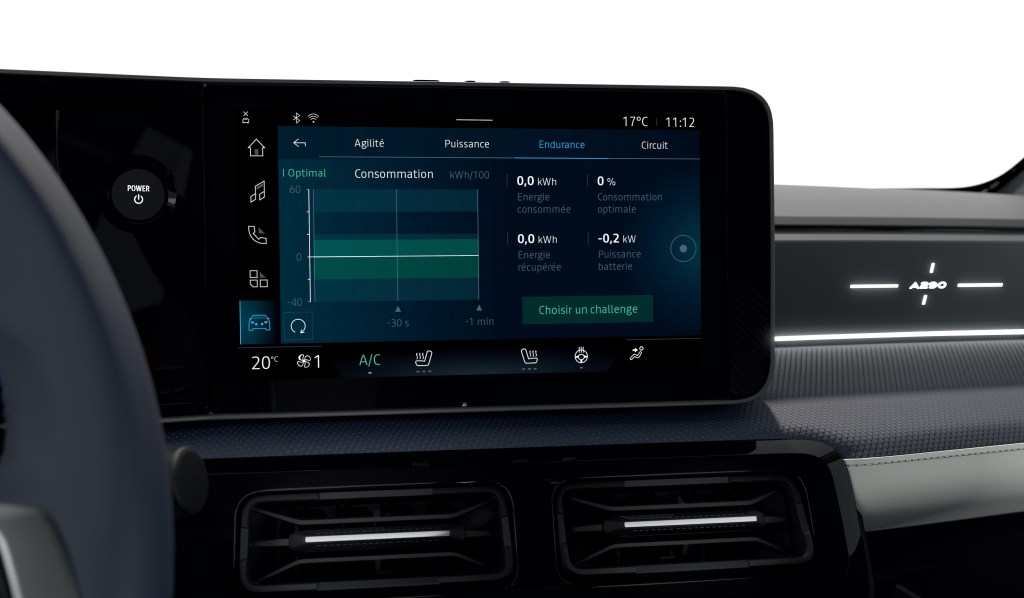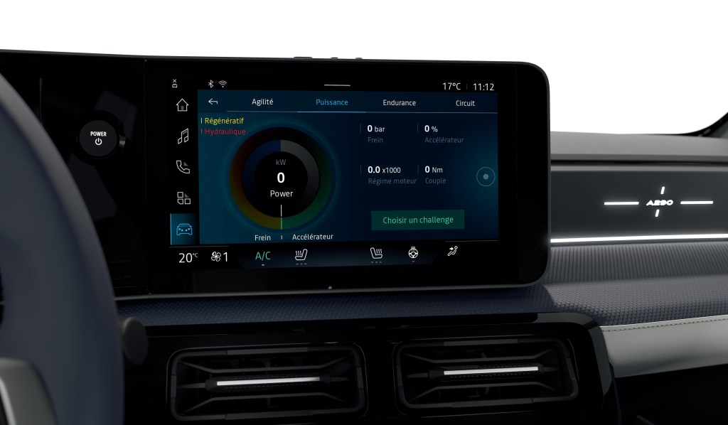 O modo como o Alpine A290 regenera a sua energia é bastante sui generis face aos mais variados modelos BEV do mercado, pois em vez de usar patilhas para ajustar níveis de regeneração ou o chamado modo ‘B’ que se ativa através módicas alavancas de caixa automática, a potência de regeneração pode ser ajustada no volante em quatro níveis através de um botão rotativo com a sigla RCH (de Recharge), são eles: nível ‘0’, para total ausência de regeneração, que permite ao veículo rolar totalmente em modo livre; o nível ‘1’ que, por incrivel que possa parecer, permite uma travagem de motor semelhante à do Alpine A110; por fim, os níveis ‘2’ e ‘3’ que aumentam progressivamente o nível de travagem regenerativa, permitindo ao condutor escolher o modo de regeneração mais adequado ao seu gosto, estilo de condução ou condições de condução.