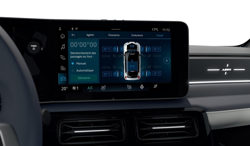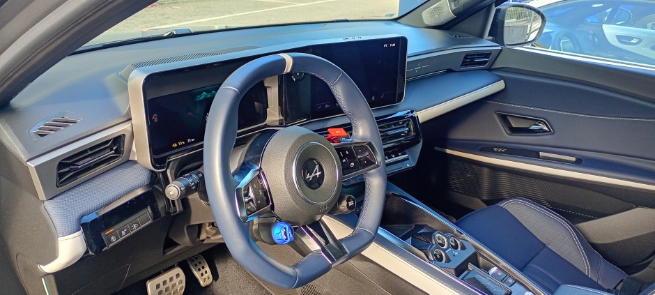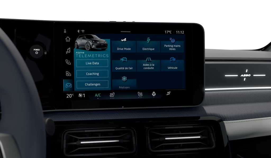 Já o ecrã central de 10,1 polegadas possui também grafismos dedicados com a mesma filosofia de design gráfico e um interface para o utilizador de acordo com o padrão Alpine, sendo ele dotado de um sistema de infoentretenimento que incorpora o sistema Alpine Portal, baseado no sistema Android Automotive e no Google Automotive Services, podendo receber atualizações remotas ‘over ther air’. Como seria de esperar, este sistema é simples e intuitivo, podendo ser utilizado via touch ou através de um assistente de voz integrado (fazendo um paralelismo com o assistente Reno do Renault 5), e tem o mesmo sistema de planeamento de rotas do irmão gémeo do A290 baseado no sistema GPS do Google Maps. Com ou sem fios, o sistema pode emparelhar e incorporar as aplicações e os ficheiros do smartphone através do Apple Car Play e do Android Auto. O ecrã exibe permanentemente a barra de estado na parte superior (hora, temperatura exterior, rede, entre outros), bem como atalhos para os menus principais à esquerda (início, multimédia, telefone, aplicações e definições do carro) e ainda controlos do ar condicionado na parte inferior. A página inicial pode mesmo ser personalizada através de widgets. Claro está, no caso concreto do hot hatchback ‘alpino’, está incluida a função Alpine Telemetrics – também disponível como aplicação para smartphones, que dá acesso aos futuros condutores (eu incluido) acesso a três categorias principais de serviços ligados à atividade do A290 e que servem para aprimorar os dotes de potenciais pilotos ou pilotos de facto. São elas: ‘Live Data’, ‘Coaching’ e ‘Challenges’.