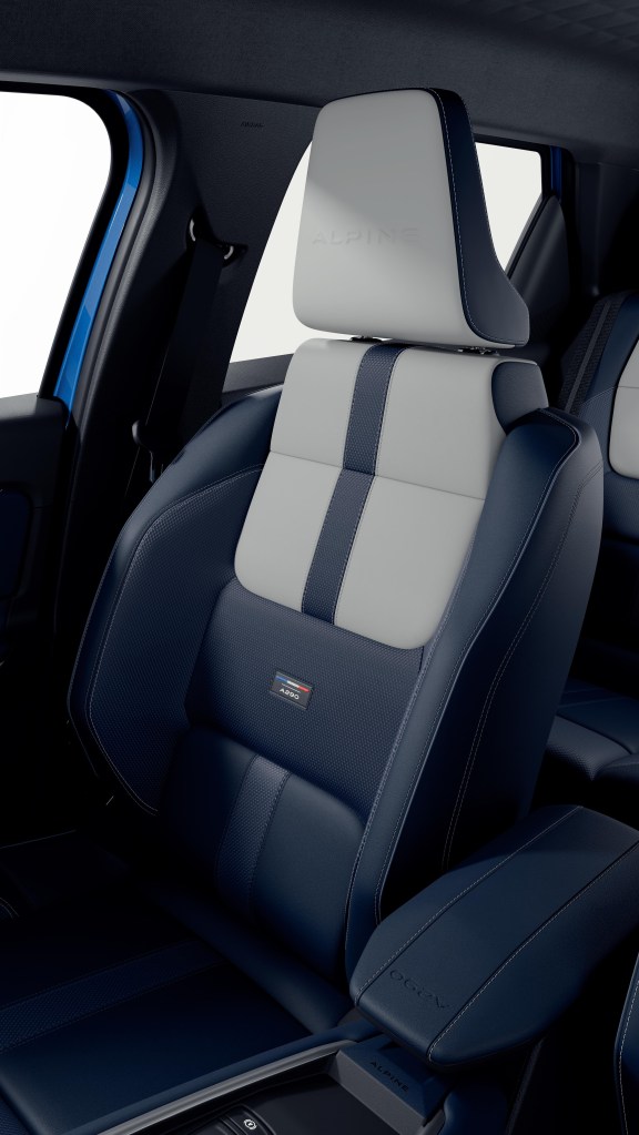 Os bancos, esses são de design exclusivo, altamente convidativos e com estofos fabricados de material ecológico, oferecendo um suporte extra lateral ao mesmo tempo que promovem o conforto em qualquer tipo de condução ou de andamento. Nas versões de base, os assentos são revestidos com um tecido granulado, com 15% de plástico reciclado e fibra de cânhamo, combinado com um tecido em ‘Deep Blue’ 100% reciclado com costuras contrastantes em cinza sílica e um logótipo A em forma de seta eletrossoldado na parte superior dos encostos. O painel de bordo, as zonas laterais da consola central e os painéis das portas são almofadados com um tecido de revestimento granulado. Já nas versões topo de gama GT Premium e GTS, os bancos, o painel de bordo e os painéis das portas são revestidos em pele Nappa ‘Deep Blue’ e ‘EeVee Grey’. O logótipo ‘Alpine’ está gravado nos encostos de cabeça em pele, e o lettering ‘A290’ está bordado no centro do medalhão do encosto. A pele Nappa é proveniente da Europa e processado de forma sustentável, sendo curtido com vagens de grãos de café e agentes vegetais para o acabamento.